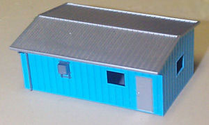 This assembled and painted model has an 8' roll-up door in