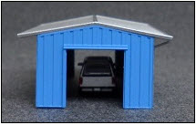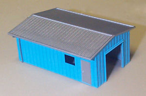 Another new structure added to the line-up -- the Drive Thru Shed. This assembled and painted model has an 8' roll-up door in one end. We include the door as a separate part so you can model the building with it open or closed. The drive-through shed (called a tractor shed in some parts of the country) has 8' roll-up doors at each end. We mold the open door frame and give you 2 doors to add if you like. You can even cut the door down and have it partially open.. |
