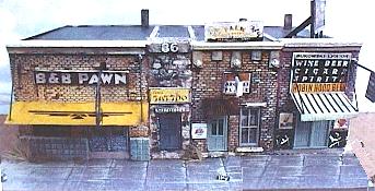 This run down looking thrift store is perfect for that "bad part of town" on your layout. It features richly detailed hydrocal castings, laser cut doors and windows, full color signs, a funky wood water tank and complete, easy to understand assembly, painting & aging instructions..
