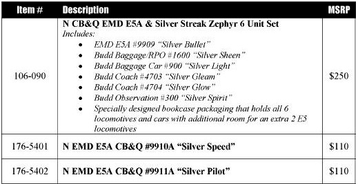 coming for the first time are the "Red Band" version of CB&Q's E5, including the #9911A Museum model. Check these new offerings out, toward the bottom of the page.