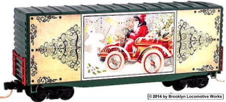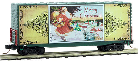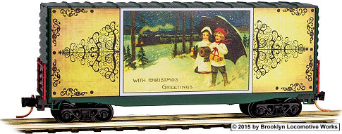 The ‘Vintage Christmas Postcard Cars is the latest holiday series of special run offerings from Micro-Trains. The series features real vintage Christmas postcard artwork on one side of the car and the back side of the postcard with a special greeting from Micro-Trains on the other side. A single car will be released each October, November and December for 3 years for a total of nine cars in the series. Cars 1 through 3 were released in 2014, with the 2nd set of 3 coming later this year. A locomotive and caboose are also included in this series.