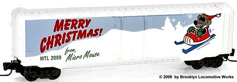 The 2016 White Christmas Delivery Train set features a Micro-Trains FT loco with Micro-Mouse as the engineer plus 3 appropriately decorated cars and matching Caboose.