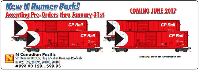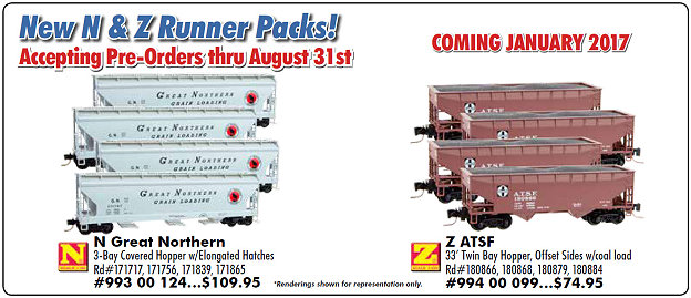 through 1/30/17 ... or while supplies last. These are beautiful cars with etched metal roof walks and elongated hatches -- at a bargain price. Road #'s are: 260472, 260498, 260561 and 260630 |