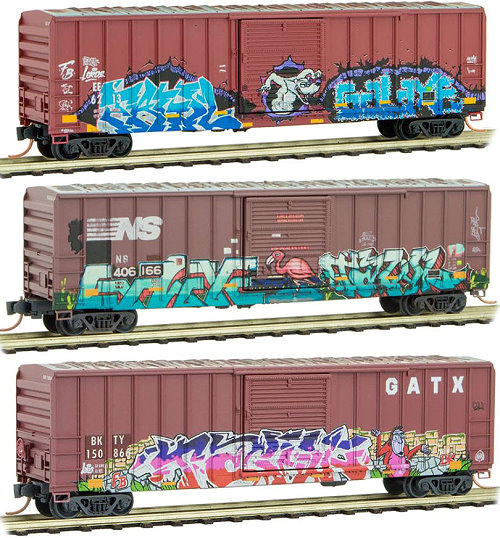 cars also available in Z Scale. Click on illustration at left for full listing of available Z weathered and graffitied cars