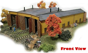 Inspired by the roundhouse still in use by the Conway Scenic Railroad in North Conway, New Hampshire. This roundhouse model provides one(1) 7 inch stall and three(3) 5 inch stalls. It can be used with turntables from 5.5" to 10.375" diameter including those from Walther's, Heljan, Kato, Peco, Atlas and Bachmann. Figures are NOT included.