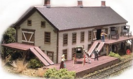 Rockingham Junction is located on the town line between Newfields & Newmarket, New Hampshire at what was the junction point of Boston & Maine’s Portsmouth - Manchester Branch and its Portland - Boston Main Line. Built prior to 1850, the Rockingham Station and Freight Shed still survive today along the rails of Gilford (PanAm) Transportation. This laser-cut micro-plywood kit includes both the Station (3 1/4" 4 1/4") and Freight House (4" x 2 1/2"). Step-by-step instructions with scale drawings and assembly photos are also included. Figures are NOT included.