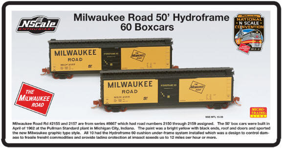 Beautiful 3 car set of prototypical paint schemes used by the Milwaukee Road on their series of Hydroframe 60 Single Door 50' Box Cars. Beautifully captured by Micro-Trains for the N Scale Enthusiast