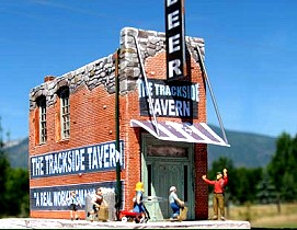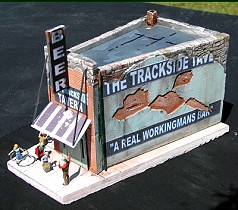 plastic doors and windows, a small stretch of weathered sidewalk,