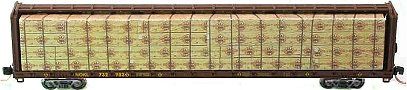 Forest Industries load shown on Red Caboose UP 73' Centerbeam