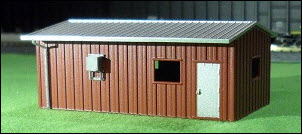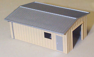 Another new structure added to the line-up -- the Drive Thru Shed. This assembled and painted model has an 8' roll-up door in one end. We include the door as a separate part so you can model the building with it open or closed. The drive-through shed (called a tractor shed in some parts of the country) has 8' roll-up doors at each end. We mold the open door frame and give you 2 doors to add if you like. You can even cut the door down and have it partially open.. |
