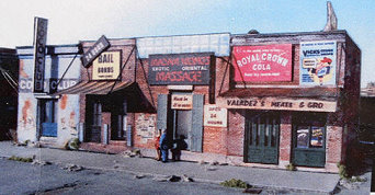 This run down looking thrift store is perfect for that "bad part of town" on your layout. It features richly detailed hydrocal castings, laser cut doors and windows, full color signs, a funky wood water tank and complete, easy to understand assembly, painting & aging instructions..