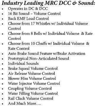 Note: If you have purchased a new DCC Ready Mike or Pacific, you can upgrade to the DCC/Sound Version.