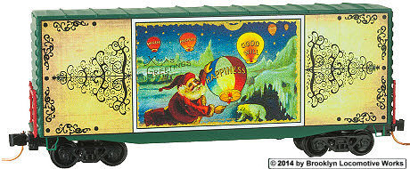 The ‘Vintage Christmas Postcard Cars is the latest holiday series of special run offerings from Micro-Trains. The series features real vintage Christmas postcard artwork on one side of the car and the back side of the postcard with a special greeting from Micro-Trains on the other side. A single car will be released each October, November and December for 3 years for a total of nine cars in the series. Cars 1 through 3 were released in 2014, with the 2nd set of 3 coming later this year. A locomotive and caboose are also included in this series.
