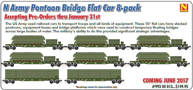 To reserve these exciting new Micro-Trains DODX series flat cars with expected delivery starting in the summer of '18 -- please click on the link below to be directed to the order / reservation page on the hogtrains.com web cite.