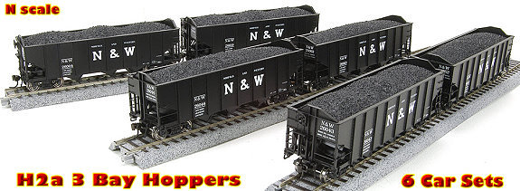 | H32 N Scale Covered Hoppers -- 4 Car Sets |